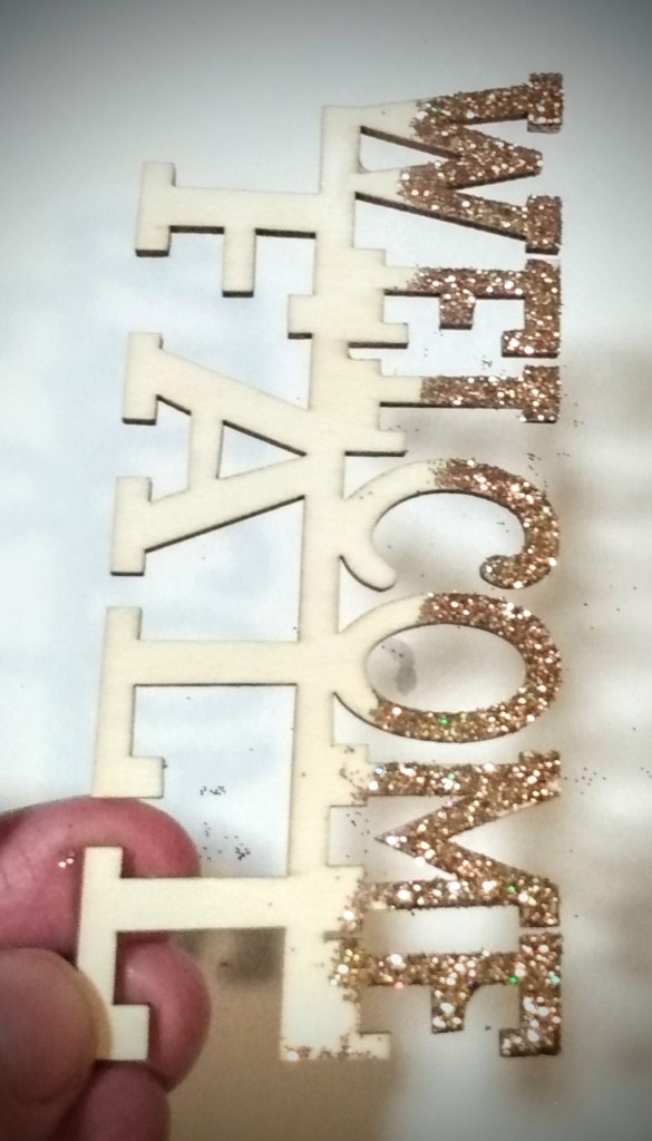If you have the time, polycrylic paint is the best as far as it goes to completely seal in all the glitter. This can be the determining factor if someone in your house, or the person you’re gifting too, hates glitter with a passion. This is completely sealed and there is no glitter loss. Just be aware that the fumes are strong and curing can take 24-48 hours. But the fumes will dissipate. I highly recommend that you dab polycrylic on. If you try to brush it on, you will get streaks, glitter will clump on your brush, and there will be brush tracks in your glitter.