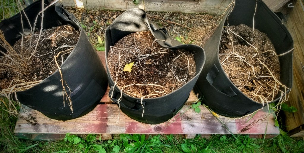 I haven’t yet harvested my sweet potatoes. But I prepared their grow bag the same way as my potatoes. I’m trying to give them the most time to grow and the vines haven’t died back yet.