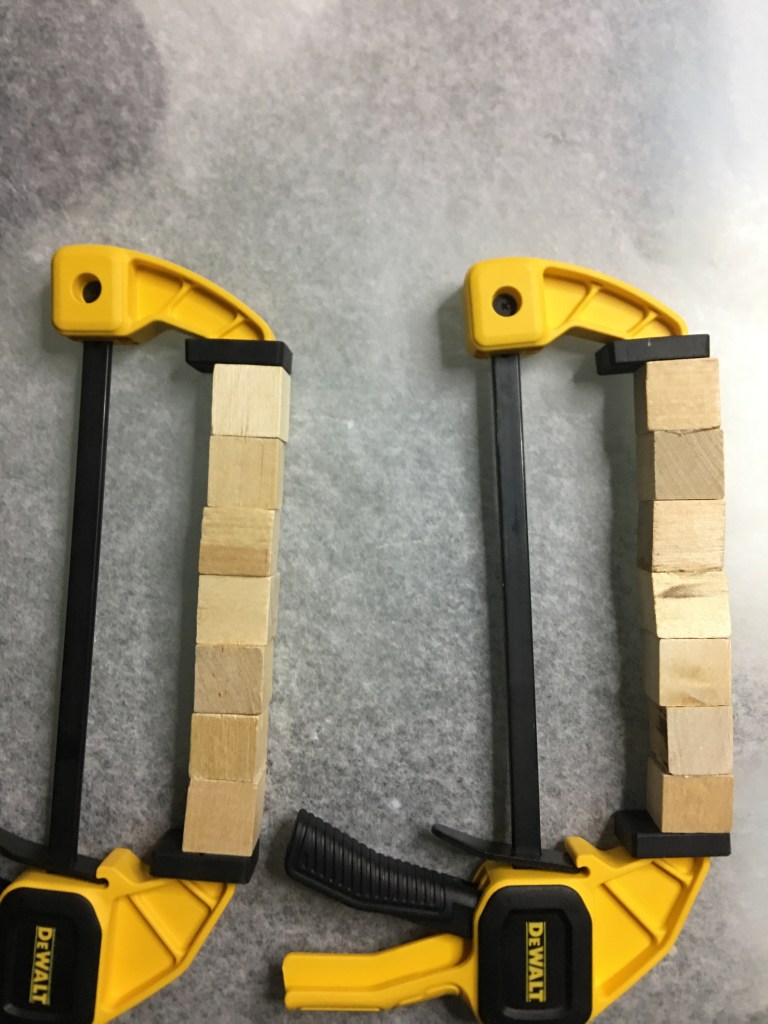 TIP #1: Examine your Jenga Blocks. You want to make sure they are solid wood with no cracks, grooves, or holes. The cheaper Jenga Blocks do not give you the easiest surfaces to work with. I had a couple of blocks that had a gaping hole where the wood was laminated together. The glue went straight down to my work surface. If sanding doesn’t give you a smooth working surface, paint your blocks. The glue actually held much better to the painted surface than the laminated wood surface. Plus, the paint fills the gapes and grooves for you. Just be sure to let your paint dry overnight.