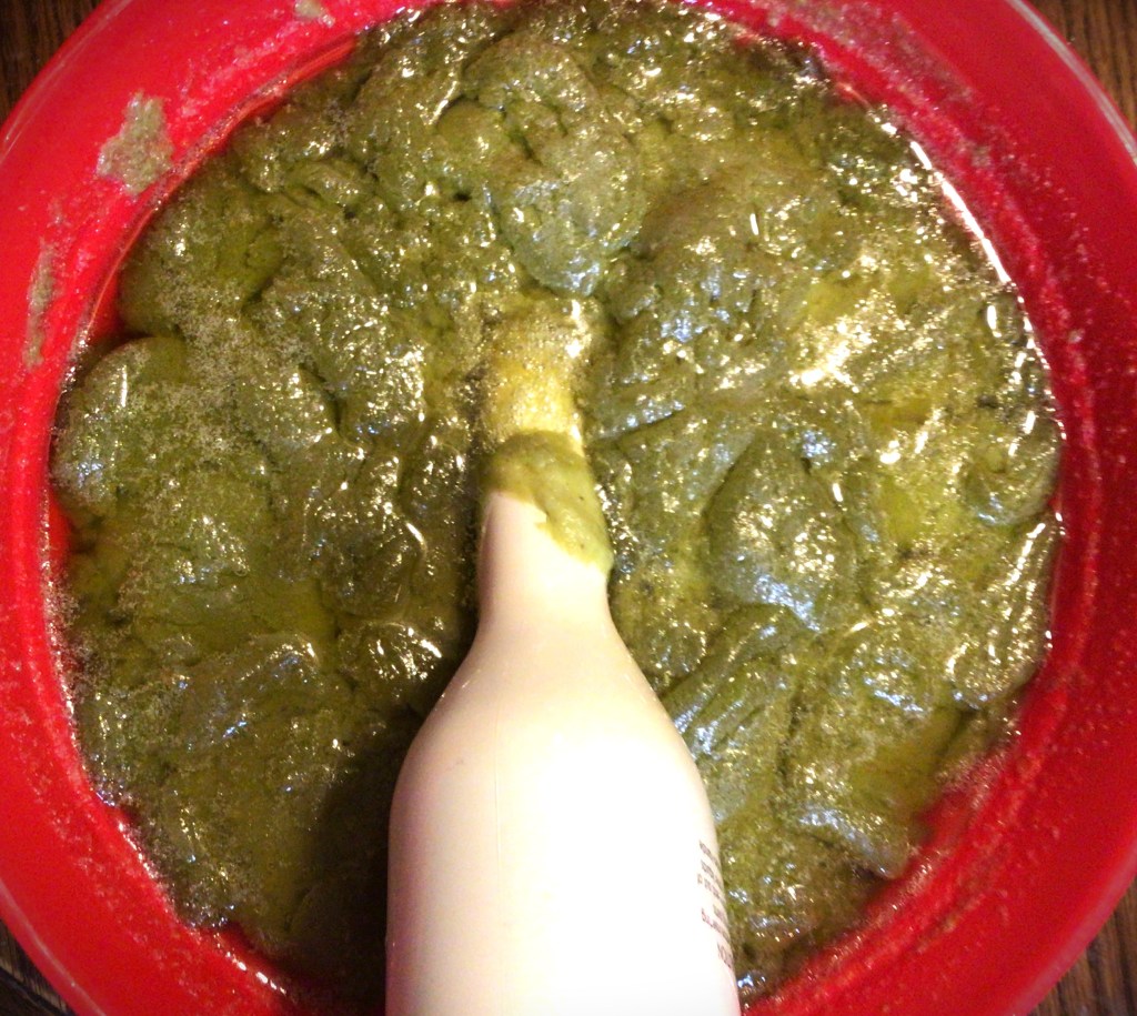 And the more that I blended the soil back into the soap version of cottage cheese, the problems didn’t go away. By the time I got the oil slick to disappear, my soap seized up!